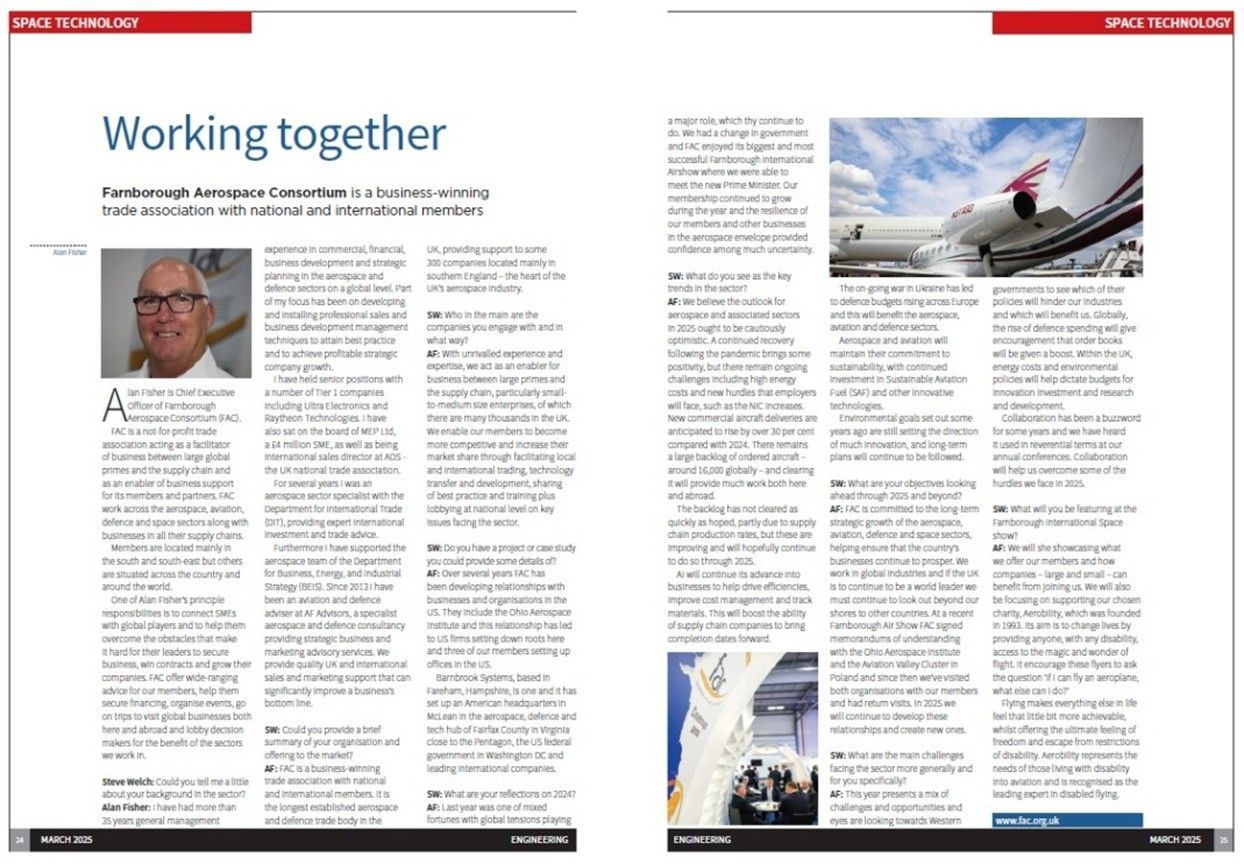 2025 has been the most successful in FAC’s 28-year history with membership growing by 33 per cent, to just under 200. More applications coming in ahead of 2026, which will see Farnborough host the hugely important air show in July. We’ll be in Hall One and there are a few spaces left for members to join us.