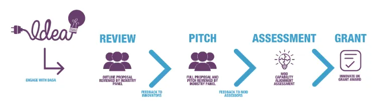 There is one application entry point at the outline proposal stage. Engage with DASA at idea stage to support your idea formation. Once your application is submitted, outline proposals are reviewed by an industry review panel which will include experts from industry, across a range of defence organisations. The application process includes feedback points and a capability alignment assessment before a grant is awarded.