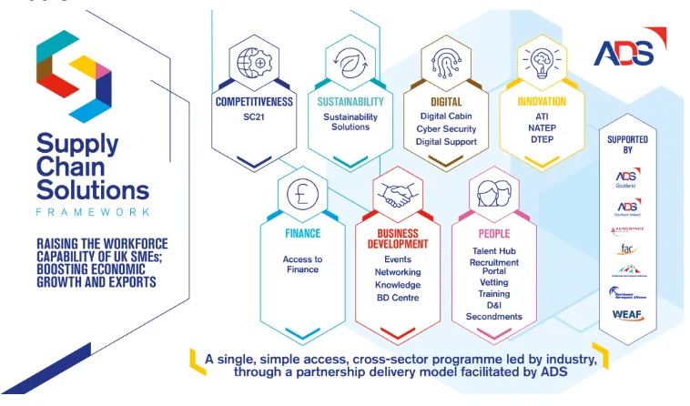 It is now part of a wider Supply Chain Solutions Framework, a cross sector programme led by industry and facilitated by ADS on a not-for-profit basis in partnership with the Regional Aerospace Alliances (RAA) and Devolved Administrations.