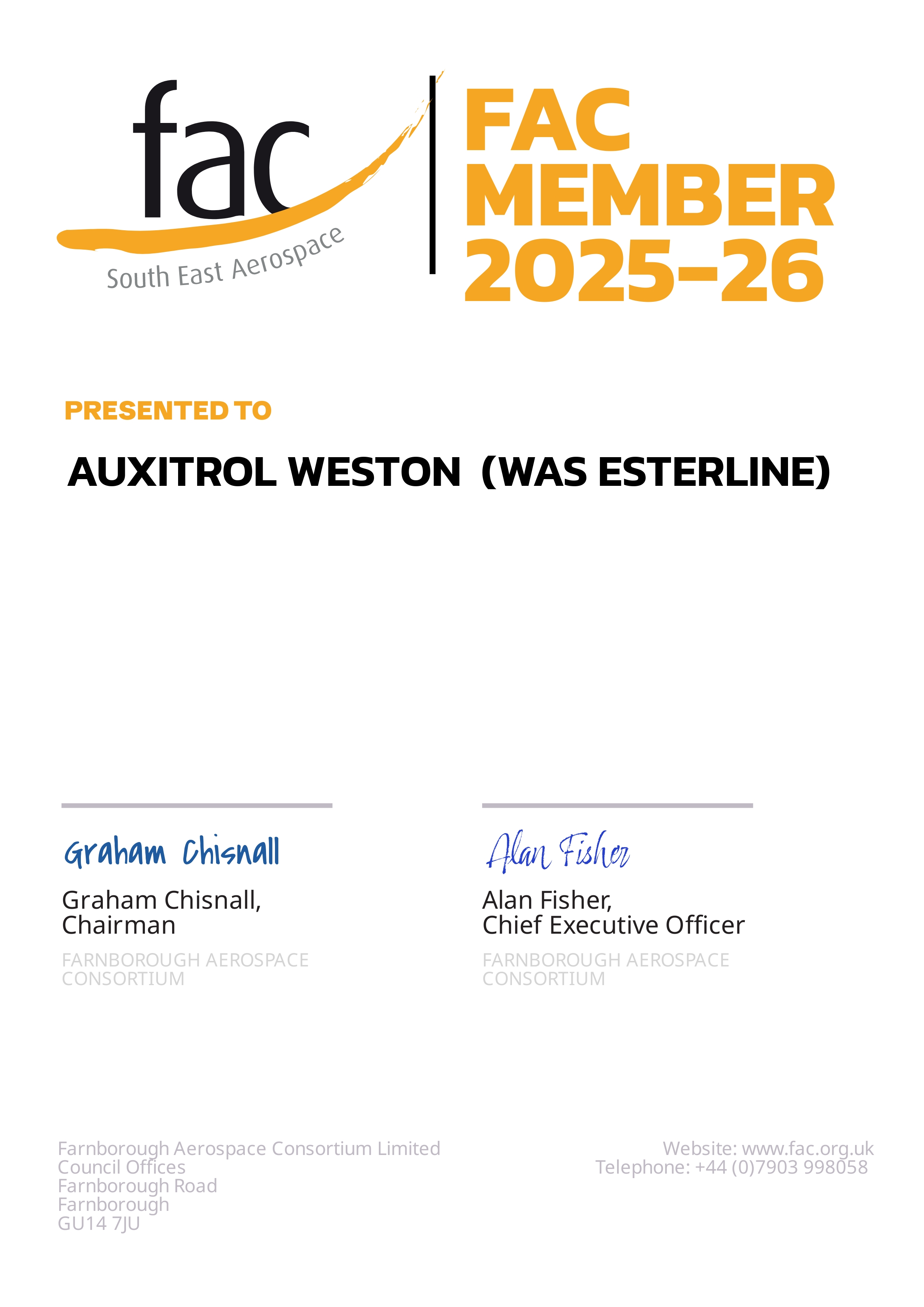 Auxitrol Weston is a leading global manufacturer specializing in aerospace sensors designed for the harshest environments. With over 40 years of experience and a legacy that includes the former Esterline brand, the company serves as a trusted partner to OEMs and airlines across commercial, military, aero-derivative, and industrial markets. Auxitrol Weston is recognized for its commitment to innovation, reliability, and tailored solutions that support critical aerospace applications worldwide.