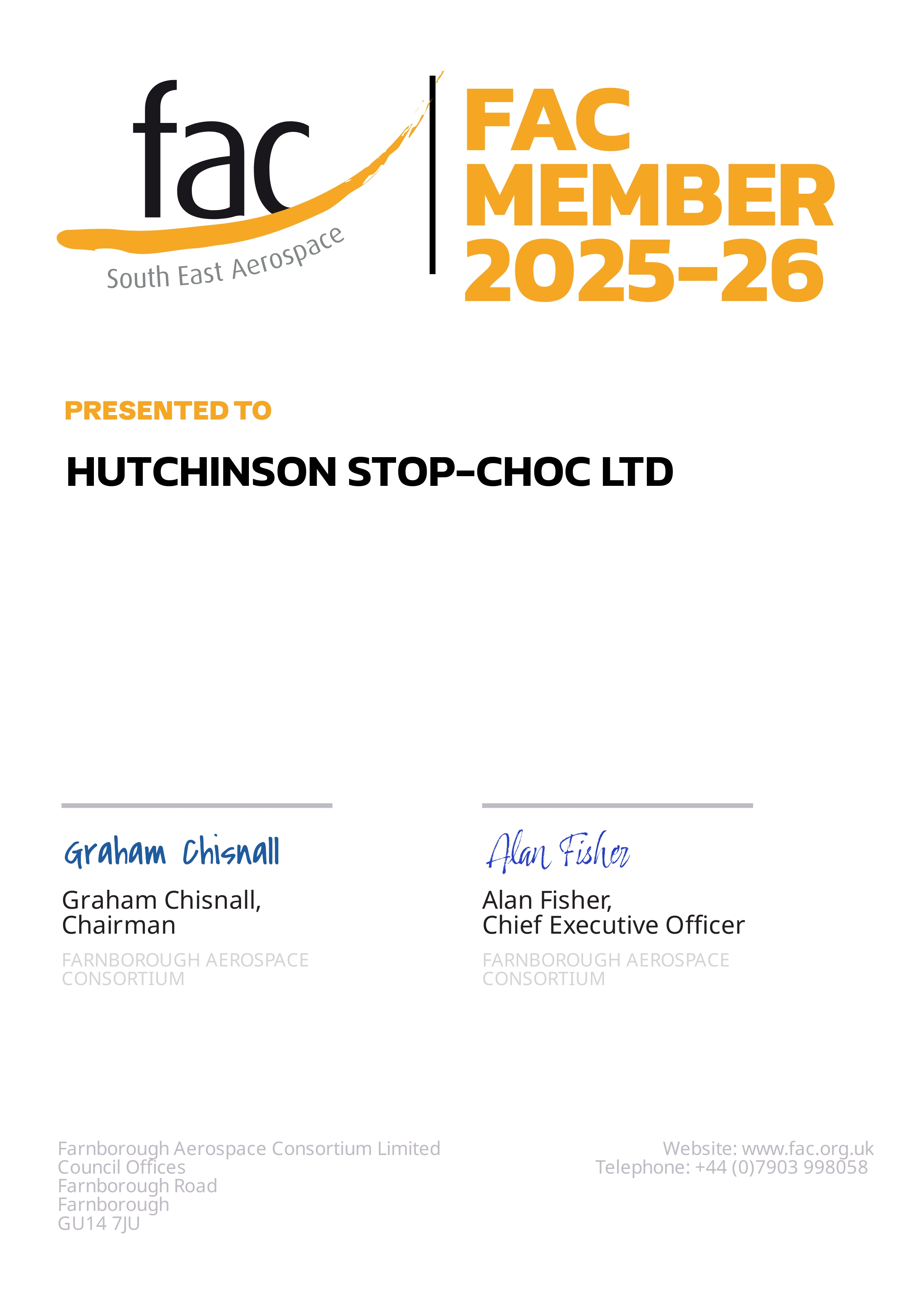 Hutchinson Stop-choc Ltd, established in 1976 and now part of the Hutchinson group, is a specialist in designing and manufacturing solutions that protect against shock, vibration, and structure-borne noise. The company serves a broad range of industries, with a significant focus on the aerospace sector, and is recognized for its expertise in anti-vibration technology and illuminated control systems.