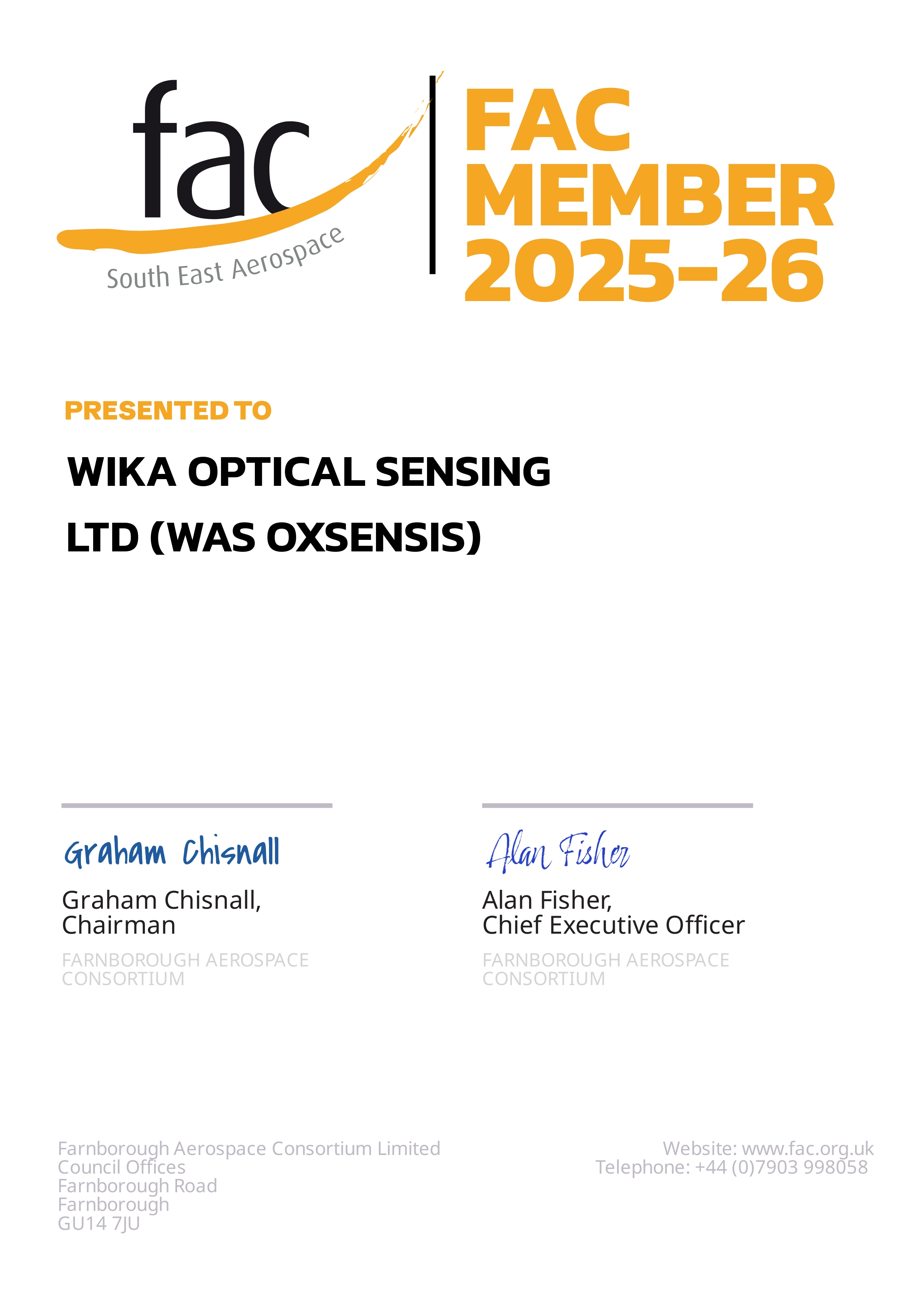 WIKA Optical Sensing Ltd, formerly known as Oxsensis, is a specialist in optical sensing technologies for pressure and temperature measurement, particularly in demanding environments where traditional electrical sensors may not be suitable. Established in 2003 as a spin-out from the STFC’s Rutherford Appleton Laboratory, the company has a strong heritage in developing Fabry-Perot based optical solutions for industries such as aerospace, power generation, and process industries. In 2023, Oxsensis was acquired by WIKA, becoming WIKA Optical Sensing Ltd in 2024, and now operates as part of the WIKA Group from its base in Oxfordshire.